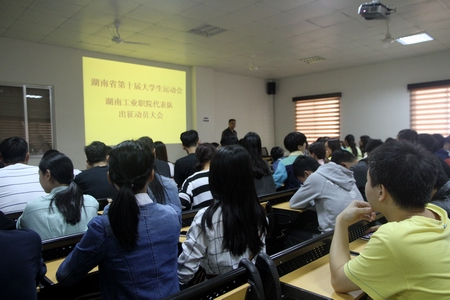 本网讯 10月14日,湖南省第十届大学生运动会我院代表队出征动员大会在学生事务中心举行。学院党委副书记周立华出席会议,教务处、学生工作处相关负责人及大运会我院代表队各参赛项目教练员参加了动员大会。大会由体育艺术部部长周文主持。