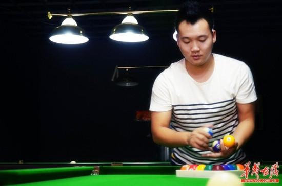 7月18日下午,工院后街上的“很多人台球城”,因为暑假的到来没有了往日的人声鼎沸,台球馆两层共20架台球桌只有零散的几桌传来台球碰撞的清脆声,一个老板模样的年轻人不时从柜台前起身,帮结束一局的客人重新摆球。