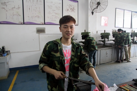 我是2013级机电一体化专业的郑宗宇,我在钳工实训室。“万贯家财,不如一技在身”。学弟学妹们如果选择了动手能力要求高的专业,可不能怕苦怕累,专业技术一定要学精!