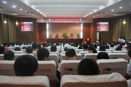 本网讯 6月11日上午,2014届毕业生毕业典礼在我院图书馆多功能报告厅隆重举行。学院党委书记熊琦教授、院长刘建湘教授、副院长陈超教授等学院领导出席典礼,各系(院)部门负责人、辅导员、毕业生及在校学生代表共同见证这一神圣时刻。典礼由学院党委副书记周立华主持。