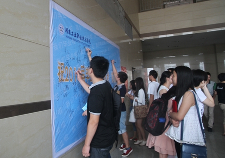 “祝2014届学长学姐们前程似锦!”“毕业了!别了,工院,别了,母校!”现场微博的适时互动也让现场气氛变得热烈而不失离别的愁怅。