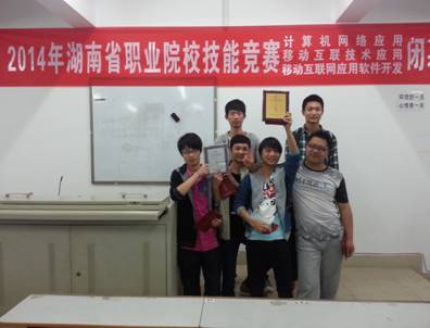 由陈敏、郑志凌担任指导老师,由阳佳航、朱振、邓永黔组成的代表队在20个参赛队伍中脱颖而出,获计算机网络应用赛项团体一等奖;由李俊成、谢丁峰、徐运标担任指导老师,由刘伟、李孝刚、揭明阳组成的代表队在16支参赛队伍中获移动互联网应用软件开发项目一等奖,另一支由徐瑞亮、曾煜林、刘锐组成的代表队获移动互联网应用软件开发项目二等奖;由周鹏程、张敏担任指导老师,动漫设计与制作专业陈海文获动漫技能竞赛个人赛三等奖。