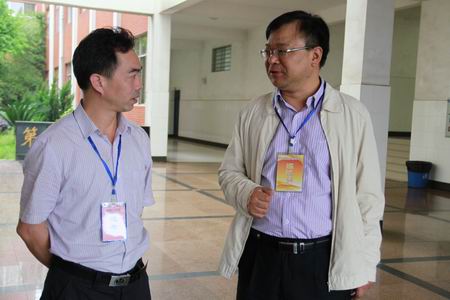 我院副院长陈超(右一)巡查考场,与湖南工学院副校长王利华进行交流