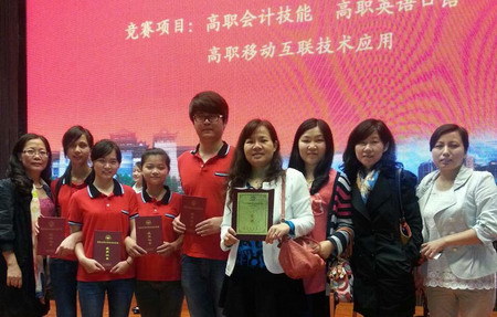 本网讯 5月17日,2014年湖南省职业院校技能竞赛(高职组)会计技能大赛在长沙民政职业技术学院落下帷幕,本次大赛共有35支队伍140名选手参加比赛。我院经济管理系由李蜀湘主任任领队,胡春秀、郭兆、田芙蓉、刘晶晶老师担任指导老师,会计电算化专业学生段飘飘、李丹、李许花、吕彬林4位选手组成的代表队参加了本次大赛,以高超的专业技能和良好的团队合作精神获得湖南省职业院校技能竞赛(高职组)会计技能大赛团体一等奖,这也是我院代表队连续三年荣获该殊荣。