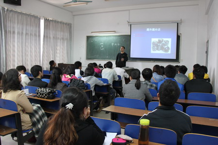 3月27日下午,我院党委宣传部工作人员,各院、系、部门通讯员,大学生记者团全体学生记者欢聚在第二教学楼2207教室内,《湘声报》首席摄影记者曹劲风从“题外题内话”和摄影词汇切入,正在为大家讲解九游·官方网站摄影的方方面面。