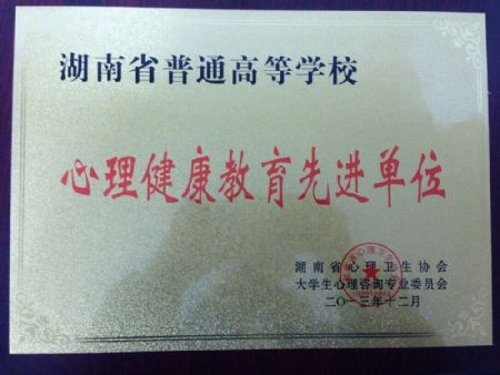 会议对本年度全省高校在心理健康教育工作领域做出积极贡献的先进集体和先进个人颁发表彰决定。我院喜获“2013年度湖南省高校心理健康教育先进单位奖”;杨雨晴老师荣获“2013年度湖南省高校心理健康教育先进个人”;廖娓老师荣获“2013年度湖南省高校优秀心理咨询师”;学院心理协会荣获“2013年度湖南省高校优秀心理类学生组织”。