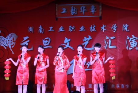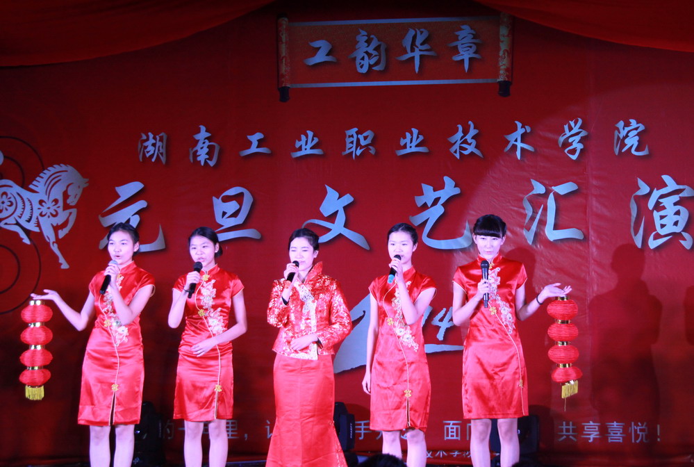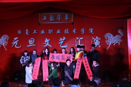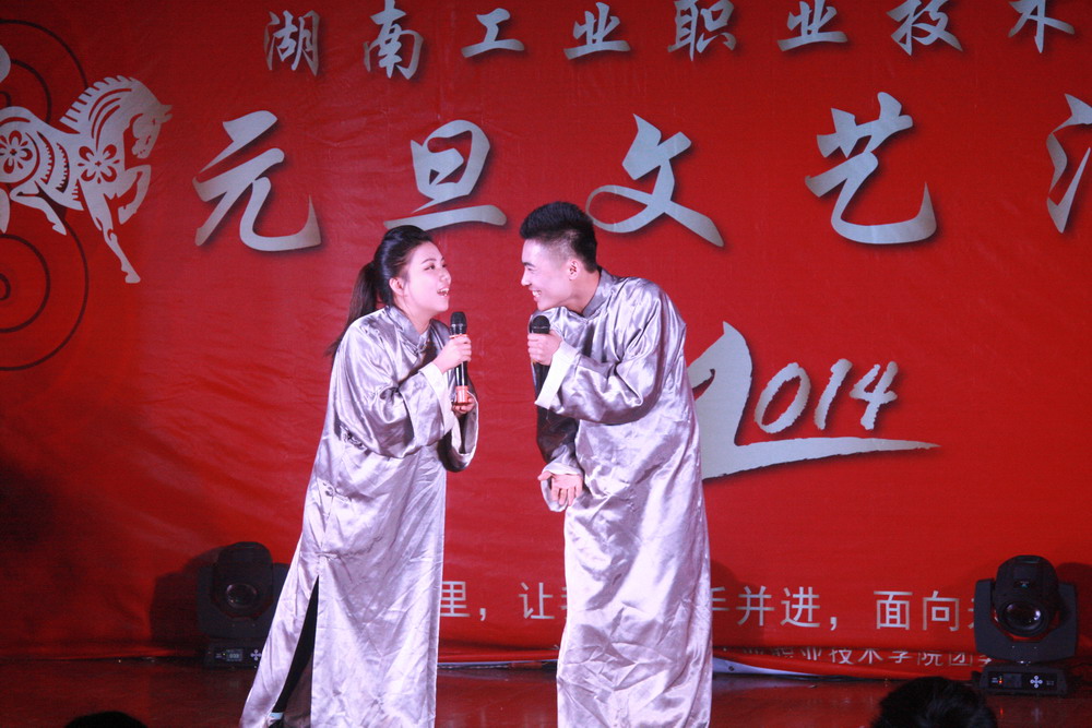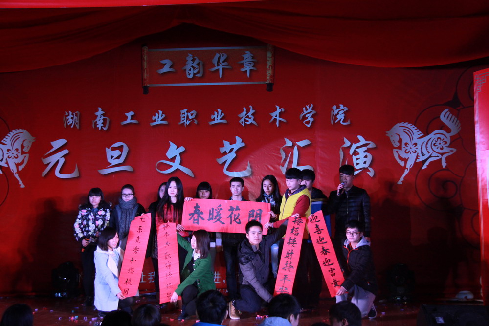 晚会分为温暖前行、瑞雪丰年、福马迎春三章。在精彩的现场节目之余,各系学生代表也送上了新年祝福,祝福学院越来越好,师生健康快乐。整场晚会展示了我院师生才华,彰显了师生积极向上的良好精神风貌。过去的一年,我们同心同德,开创佳绩。我们挥洒汗水,放飞希望。新的一年,愿我们昂首阔步,点燃激情。愿我们温馨和谐,收获喜悦。祝福湖南工业职院2014年马到功成!