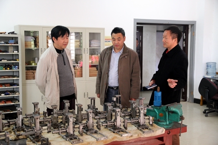 在实训室里,熊琦听取了实训室管理人员和相关专业教师对实训室设备及其使用情况的介绍,询问了实训安排、教学方式方法和校外生产项目的承接情况,并与实训中的师生进行了交流,了解学生实训的情况。