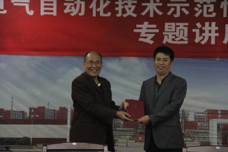 讲座开始前,刘继平代表学院向王振华博士颁发了“电工电器类专业合作建设委员会委员”聘书。