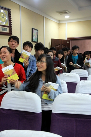 访谈现场的毕业班学生对《爱拼北京》特别有感触,也许书中的内容和情节在他们走出校门就会遇到,书中主人公对生活的热情、对梦想的坚持也感染了他们,这正是现代青年所需要的正能量。来自信息工程系财软S11-1班的戴成阳同学告诉记者:“《爱拼北京》这本书能够让人感觉到很多积极向上的力量,我们大三的学生即将毕业走入社会,也需要去拼搏,我买了多本书送给班上的同学,希望能将书中的正能量传播给他们。”