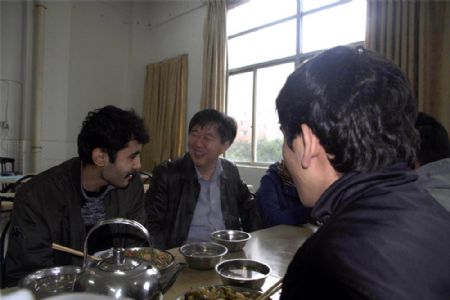 熊琦在清真食堂与维吾尔族学生亲切交谈
