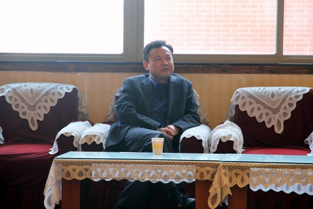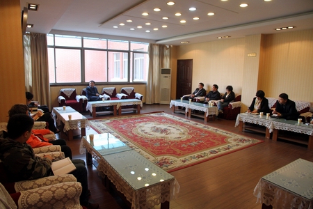 周立华对兄弟院校同仁们的到来表示热烈欢迎,并就我院建校历程、近年发展情况、学管系统队伍建设、校园竞赛文化、校园人文文化等方面进行了简要介绍;学生工作处处长苗治田以“加强教育、严格管理”概括学管工作重点,详细介绍了辅导员德育课、各类文明校园建设活动、系部学管工作考评等学管工作特色项目,以及学生资助工作、学生公寓管理等方面工作情况。随后,双方相关工作人员就学生学风建设、学生资助工作、宿舍文化建设、武装部工作、心理健康教育、各自学管工作中遇到的困难、存在的困惑等内容进行了对口交流。