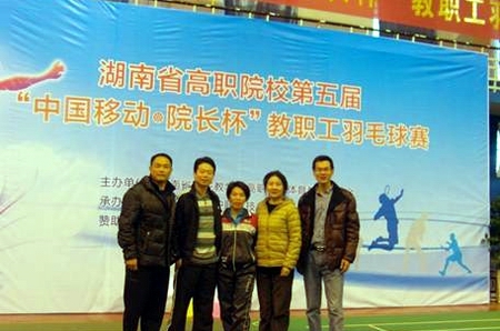 湖南省高职院校第五届“院长杯”教职工羽毛球赛经过三天的激烈角逐,于11月17日在长沙环境保护职业技术学院体育馆圆满落下帷幕。我院以学院羽毛球协会成员为主体的教职工代表在学院工会主席张志勇教授的带领下、在体育部长周文的指导下,首次参加了“院长杯”羽毛球赛,取得了良好战绩。其中后勤处任辉老师获女子单打亚军,体育艺术部李中武老师、商贸旅游系龙凌老师分别获得男子单打第四名和第五名,商贸旅游系刘昕渝老师获女子单打第七名,学院调研员刘琼老师与任辉获女子双打第七名。
