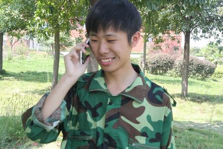 2营4连的蒋绍鹏是个腼腆的男生,他致电问候父母说:“中秋节不能回来,但是很想你们,谢谢爸妈的养育之恩,祝你们中秋快乐!”蒋绍鹏告诉父母,学校很美、生活很好,军训中的每个动作自己都能够做到位。请爸妈放心。
