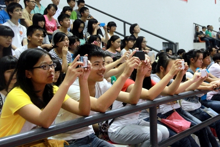 演出现场秩序井然,座无虚席,很多同学都拿起手机拍照或录像。“我刚把交响音乐会的照片发到微博上,许多朋友就纷纷给我留言,说很羡慕我能到现场欣赏高雅艺术。”商贸旅游系酒店一班的王同学开心地告诉记者。坐在他旁边的电气系周同学也很兴奋:“这是我第一次在现场听交响乐,感觉很震撼。让我想到论语中的一句话,‘不图为乐之至于斯也’。”