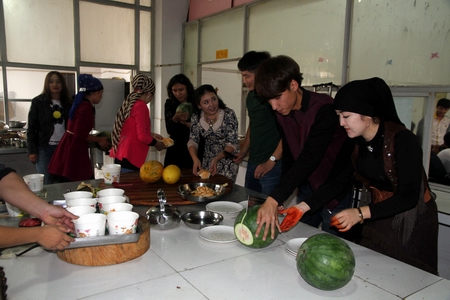 10月15日,又到一年穆斯林传统节日——古尔邦节,学院清真食堂内特色美食、鲜美水果琳琅满目,一片欢声笑语。学院副院长王柏林、党委副书记周立华及党政办、学工处、后勤处相关负责人来到清真食堂,与穆斯林学生及汉族学生代表一起载歌载舞,共庆古尔邦节。