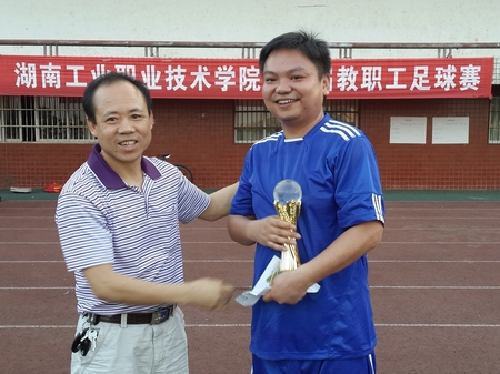 本届教工足球赛由院工会主办,院足协承办,共有跨系、跨部门组建的6支球队参赛,每场比赛要求每队必须有一名中层以上干部或副高以上职称的队员上场。最终电气工程系队、机械实习工厂联队、机关后勤联队分获冠亚季军。