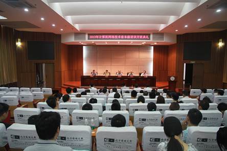 7月17日上午,2013年第一期湖南省中等职业学校计算机网络技术类专业教师省本级培训班开班典礼在图书馆报告厅隆重举行。创研科技副总经理李齐林、我院副院长刘继平、教务处处长周劲松、信息工程系副主任李健、信息工程系党总支副书记肖望兵出席开班典礼,校企培训师代表及来自全省十二个地州市中职学校的61名教师参加了开班典礼。开班典礼由周劲松主持。