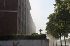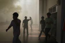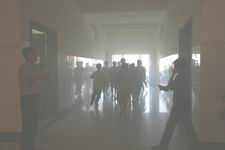 伴随刺耳的警报声,一号教学楼浓烟滚滚