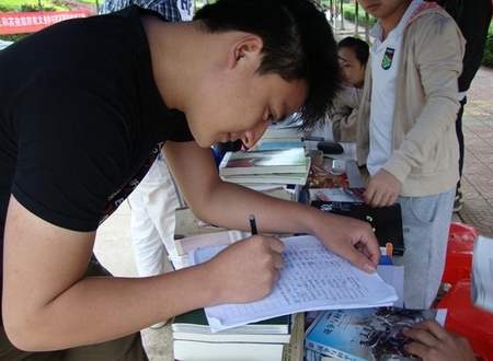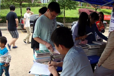 活动期间,热爱读书的同学络绎前来,挑选出自己喜爱的书籍满意离去,至29日下午6点,第一次图书漂流结束已有40多本书籍漂出。据悉,本次图书漂流活动为期一个月,期间将进行5次漂流,漂流时间为每周三下午14:00--18:00。
