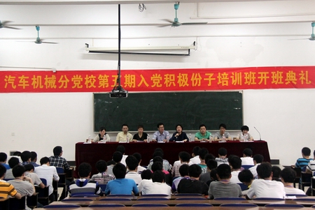 我院党校的汽车机械分党校第五期入党积极分子培训班也于18日晚开班,思想政治教育部副部长苏茂芳为分党校学员上了第一堂课。