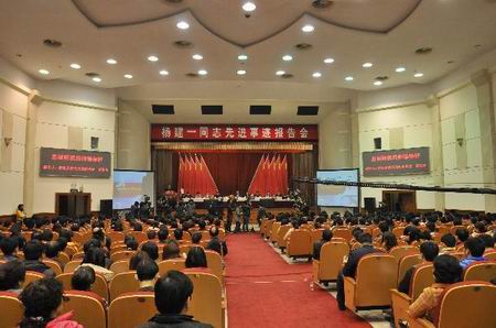 李友志表示,杨建一同志在学生生命受到威胁的危机时刻,奋不顾身、挺身而出、舍己护生,用英勇无畏的壮举,为学生撑起了生命的天空,充分展现了当代教师的高尚师德和光辉形象,深刻诠释了社会主义核心价值体系的丰富内涵,集中体现了“忠诚、担当、求是、图强”的湖南精神。他是我省教育战线的杰出代表,是全省人民的光荣和骄傲。他同时要求,全省各级各有关单位要把学习杨建一同志先进事迹与宣传贯彻党的十八大精神活动结合起来,与推进社会主义核心价值体系建设结合起来,与加强公民道德建设结合起来,与深入开展学雷锋活动结合起来,与切实转变作风、着力改善民生结合起来,用实际行动创造出无愧于时代、无愧于党、无愧于人民的光辉业绩,为全面推进我省“四化两型”建设、加快建成小康社会作出新的更大的贡献。