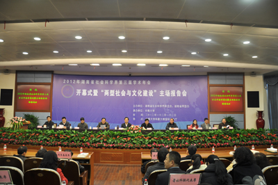 12月12日,由湖南省社科联、省长株潭“两型办”联合主办,中南大学承办的“湖南省社会科学界第三届学术年会”开幕式暨主场报告会在中南大学国际学术报告厅隆重举行。本届年会的主题为“两型社会与文化建设”。