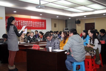 11月19至23日,通过各系(院)初赛的层层选拔,比赛前七名选手组成小组代表各系(院)参加学院决赛。决赛共设“基础知识测试”、“班情熟知”、“情景案例”三个环节。“基础知识测试”是考验辅导员开展学生工作应具备的业务知识和能力,主要包括对学生进行教育管理的政策、理论、法规、制度等基本知识以及对常用应用文体的写作能力;“班情熟知”意在考擦辅导员对所带班级每一名学生基本情况的把握程度,即辅导员根据学生照片说出该生名字及学生的5项基本情况资料;“情景案例”旨在考评辅导员的应急反应和处理能力,以及在开展大学生思想政治教育过程中凝练和总结出的具有针对性和实效性的工作思路和方法。