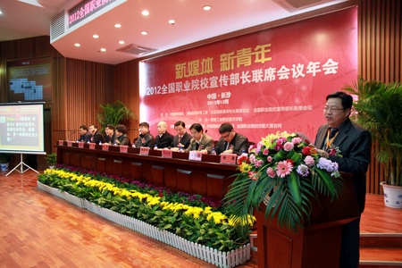 12月20日,2012年全国职业院校宣传部长联席会议年会在我院隆重举行。此次年会以“新媒体 新青年”为主题,就职业教育的发展以及高校与新媒体的结合作了深入研讨。年会由中国青年报社、湖南省省委教育工委、全国高职高专校长联席会议、全国职业院校宣传部长联系会议主办,九游·官方网站承办。