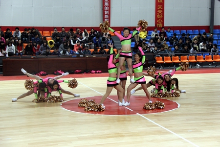 湖南环境生物职业技术学院张巧老师展示花环啦啦操教学