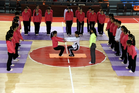 活动开展前,省教育厅体育卫生与艺术教育处蒋明处长讲话,提出了要正确认识学校体育在学生全面发展中的重要作用、进一步重视体育教学、切实抓好体育教学条件保障的三点建议,并向我院承办此次活动而付出辛勤劳动的领导、老师和同学们表示衷心的感谢。我院党委书记龙承海指出,普通高等学校青年体育教师优秀课程展示,既是一项促进专业成长,提高体育教师课堂教学水平的教学活动,也是高职院校之间相互交流办学经验、增进友谊的重要载体,是促进高职学院校园文化建设和提高教育质量的重要途径。