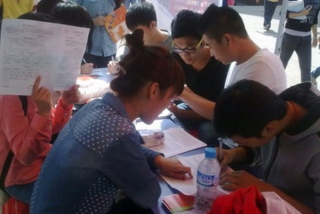 协会志愿者热心指导献血者填写表格