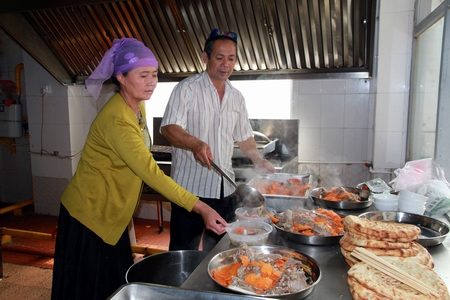 清真餐厅的新疆厨师夫妇为孩子们准备了丰盛的节日午宴