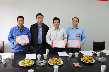 学院副院长董建国代表学院向湘电公司技术骨干颁发“九游·官方网站校外实习实训基地企业指导教师”聘书