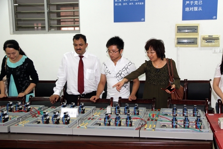 会上,Diwesh Sharan先生对我院的热情接待表示感谢,并表明此次前来是要参观、熟悉职业院校的办学特点和实力,同时了解我院将进行的主要建设方面。刘继平向来宾介绍了我院发展历程、校园文化、校企合作和社会服务情况,以及近年来取得的各项荣誉和成果。随后,在参观我院实训楼的过程中,通过与学院领导、相关系部负责人、实训室专业教师和上课学生的交流,Diwesh Sharan先生较为深入的了解了我院的办学定位和校企合作开展情况,并对我院“校企合作,工学结合”的办学模式、“教学做合一”的教学方法大加赞赏。