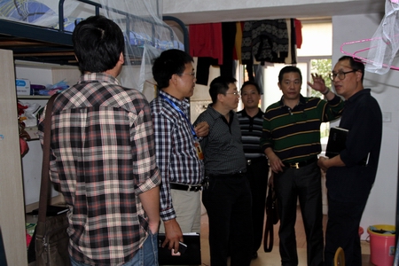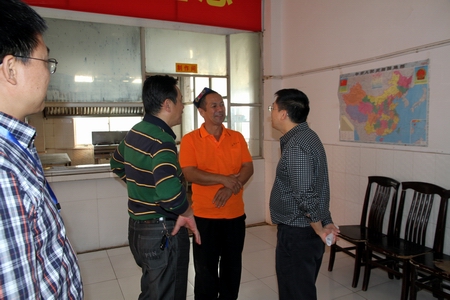 钟晓林向教育厅领导汇报我院“高校学生食堂公益性责任落实及学生床上用品质量监督管理工作”自查情况。在交流过程中,俞志松一行了解了我院学生食堂公益性责任落实情况、学生食堂管理与改革情况、学生床上用品质量监管情况等,详细询问了我院食堂饭菜价格平抑基金的设立和使用情况。随后,俞志松一行来到学生食堂、学生公寓,实地查看食堂环境、窗口设置、饭菜价格、学生寝室环境和棉被质量,并对我院“高校学生食堂公益性责任落实及学生床上用品质量监督管理工作”给予了高度肯定。