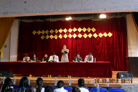 10月10日下午,商贸旅游系2012上学期期末表彰大会暨第六届“校园风采”文化艺术节开幕式在1102教室拉开帷幕。大会由该系谢昕中老师主持,与会嘉宾有学生工作处副处长梁艳、商贸旅游系党总支副书记龙凌、副主任杨文斌,以及杜立林老师、刘喜旺老师、毛一老师等。商贸旅游系全体同学参加了此次大会。