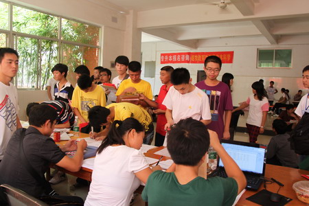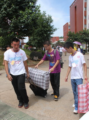 9月8日,我院2012级新生报到第一天。大学生记者团学生记者兵分两组来到火车站学院迎新点,并全程采访到一对来自新疆的母子和一对来自湖南的父女。对于即将开始的大学生活,就读电气工程系汽车电子技术专业的于泽杰和经济管理系金融与证券专业的邹丰都表示:优美的校园环境,新生报到时的亲身感受,已让他们体会到了大学的亲切。