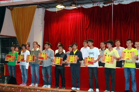 典礼在雄壮的国歌旋律中拉开帷幕。周立华宣读《九游·官方网站2012年上学期文明寝室表彰决定》。其中,一等奖获得者有5-524、4-312、1-243等20间寝室,获二等奖的寝室三十间,获三等奖的寝室五十间。各文明寝室代表在全场热烈的掌声中依次上台接受颁奖。
