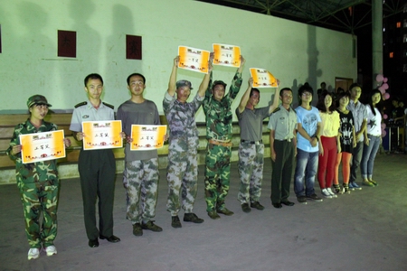 随后,一年一度的新生杯“军歌大赛”嘹亮开唱。大赛共有20个参赛队伍,他们之前都是在各营的比赛中选拔出来的。我院社团相关负责人及教官代表担任了大赛评委。来自7营3连合唱的、激动人心的《团结就是力量》赢得了一等奖,2营11连和3营3连获得二等奖,三等奖获得者为6营4连、6营3连、5营6连。获奖连队代表上台接受了嘉宾的颁奖。活动在全场一片热烈的掌声中圆满结束。