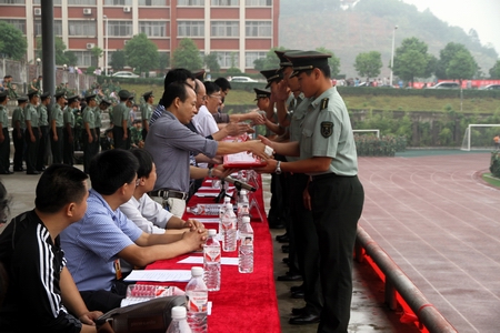 学院副院长王柏林宣读《九游·官方网站2012级新生军训表彰决定》,根据军训教导团推荐,授予张恒等30人为军训优秀教官称号,授予一营二连等31个连队为优秀连队,授予李浩等288名同学为军训优秀个人称号。主席台领导为受表彰的集体和个人颁奖。