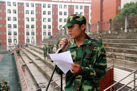 军训单位领导、国防科技大学指挥军官基础教育学院四大队副大队长杨刚在会上讲话。他代表国防科大指挥军官基础教育学院学员四大队全体官兵,向出色完成军训任务的新同学们表示热烈的祝贺。他说,大学生军训是国防教育的重要形式,也是培养大学生综合素质的重要途径,军训过程中同学们不怕苦、不怕累,充分展示了当代90后大学生优秀的意志品质和良好的精神风貌,更昭示了湖南工业职院欣欣向荣的美好明天。他祝愿湖南工业职院越办越好、蒸蒸日上,同学们生活愉快、学业有成。