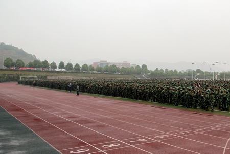 2012级新生军训检阅暨开学典礼在学院田径运动场举行