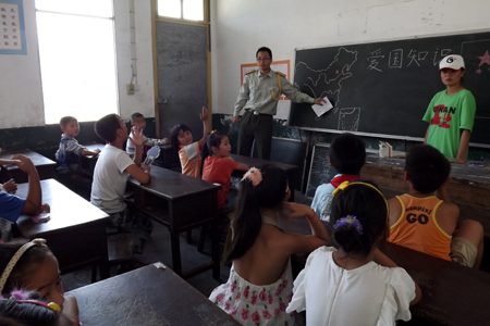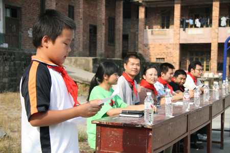 在我院挂职干部、现任安化县团委副书记彭波的安排下,同学们来到了驻地--洞市完小。完小的朱校长热情接待了志愿者们,古朴的校舍,几十张空荡荡的木板床,让队员们开始品味着来自乡村特有的安恬。