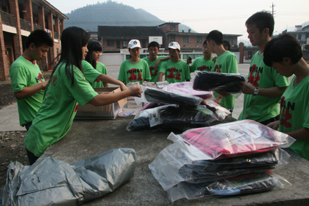 清晨,志愿者们整理捐赠物品