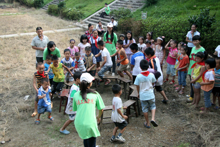 志愿者带孩子们做游戏