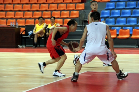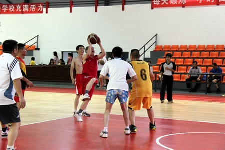 我院教职工篮球队在党委书记龙承海和院长刘建湘的带领下,秉承“友谊第一,比赛第二”的宗旨,与省机械行管办职工篮球队进行了一场精彩的篮球友谊赛。比赛一开始双方便迅速进入状态,频频通过上篮得分。比赛中,双方你来我往大打进攻战,在半场阵地内积极拼抢,表现出较高的篮球基本功和战术素养。我院教职工篮球队展现出了自身特长,通过抢下后场篮板再进行长传球得分,整个配合默契,球员跑位积极。经过四节的龙争虎斗后,我院教职工篮球队以40:33的比分赢得比赛。