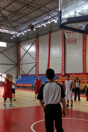 6月19日,我院训练馆内,双方篮球队球员在场下交流时谈论到,说的正是我院院长刘建湘在场上连续进球的精彩表现。