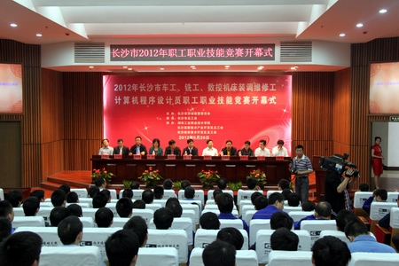 5月26日上午,长沙市2012年职工职业技能竞赛在我院多功能报告厅隆重开幕。湖南省总工会副主席李挚、长沙市人民政府副市长何寄华、省人社厅职业能力建设处处长宋宏、省总工会生产保护部部长彭晛丹、省职业技能鉴定中心主任李日新、省总工会技协办主任夏忠宏、市总工会副主席肖新田、共青团长沙市委纪检组长王海军、我院党委书记龙承海、院长刘建湘、副院长董建国、院工会主席张志勇等出席开幕式,省职业技能鉴定中心、相关市直单位的工作人员、参赛选手、裁判和多家九游·官方网站媒体记者参加了开幕式。开幕式由市总工会党组书记、副主席彭惊雷主持。