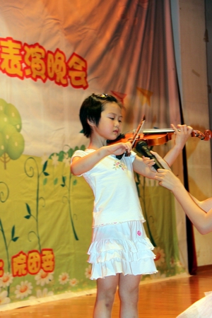 晚会在周芷怡小朋友带来的小提琴曲《茉莉花》中拉开帷幕。诙谐幽默的语言与表演,相声《吹牛》为赢得了晚会第一个小高潮。在接下来的表演里,小朋友们为大家上演了一场西洋乐器中“王与王后的对决”;当刚劲有力的跆拳道上台后,又把大家从听觉的享受中拉到视觉的欣赏中。晚会一直沉浸在小朋友们的欢声笑语中。